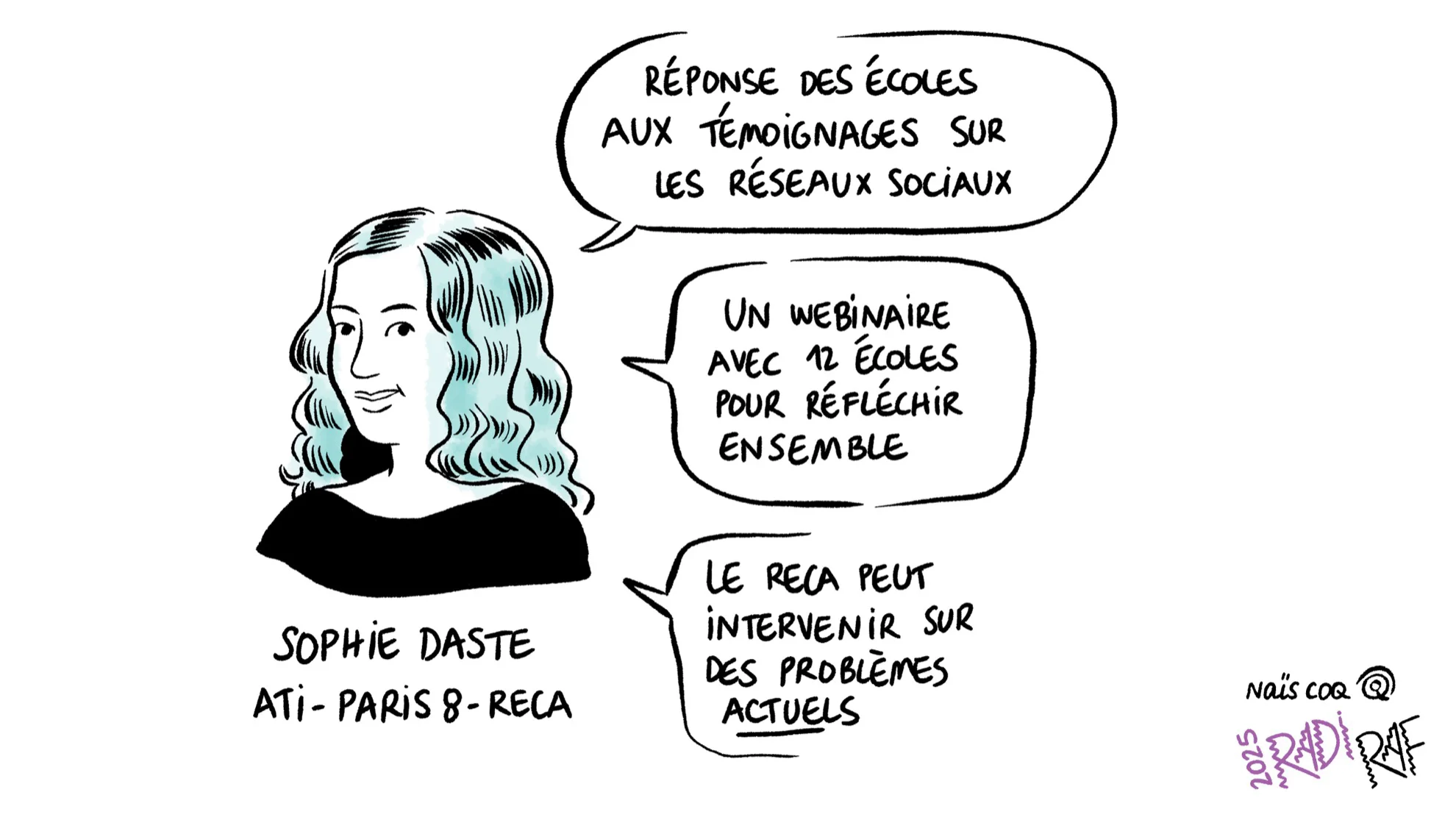 Illustrations réalisées en direct pendant les conférences RADI RAF par Naïs Coq et Morgane Parisi